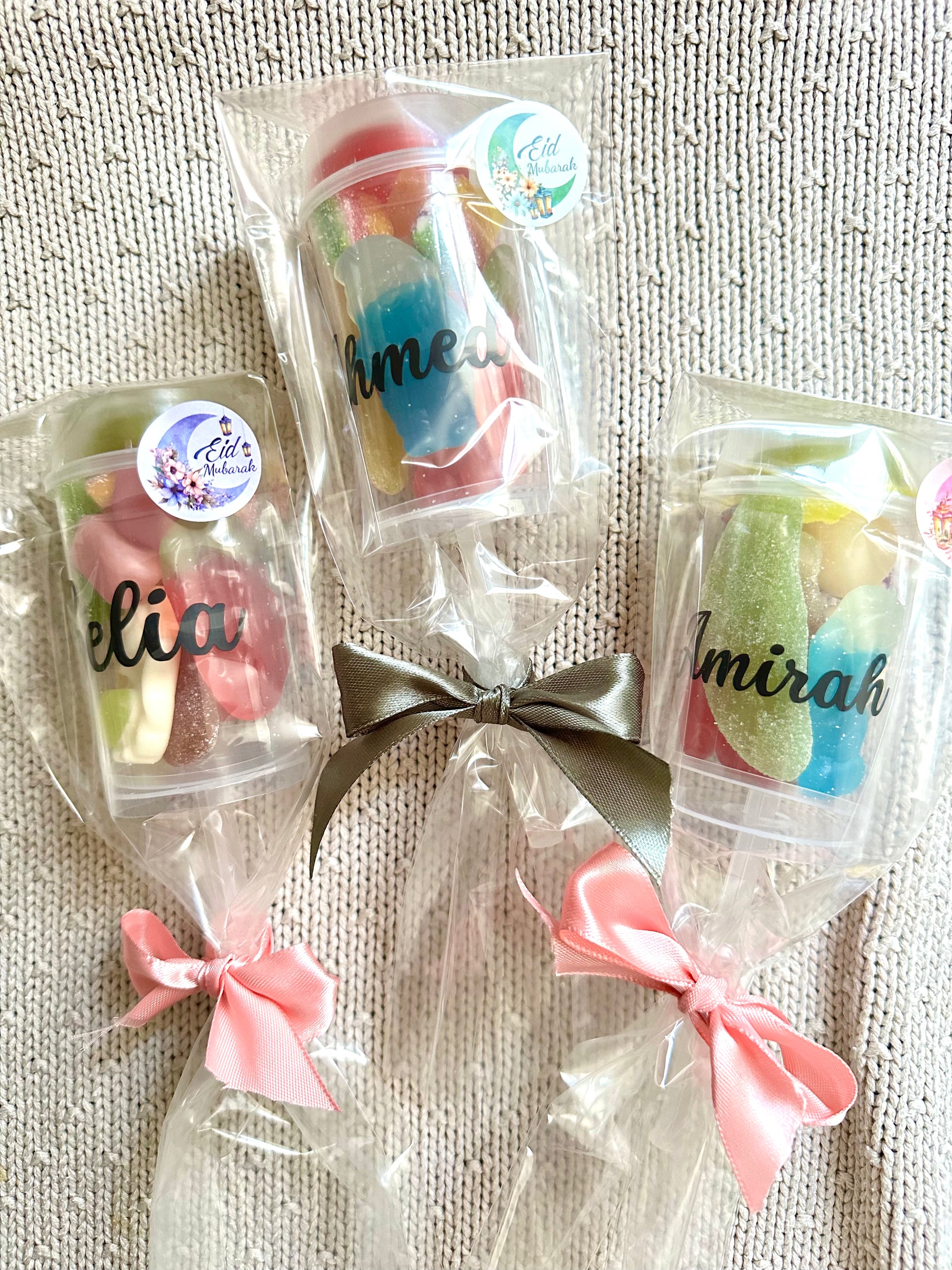 Goed gevulde gepersonaliseerde snoepopper met enkel 100% vegan/halal snoep. De pops worden ingepakt per stuk